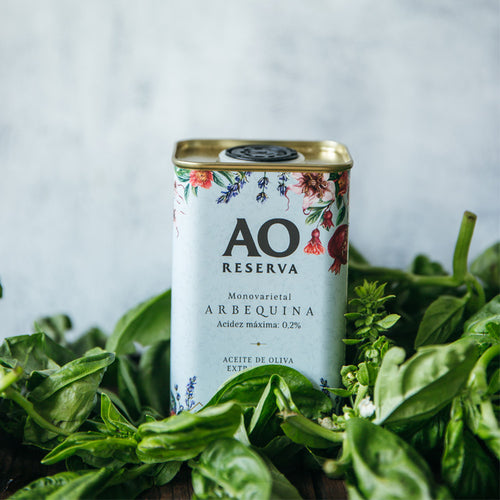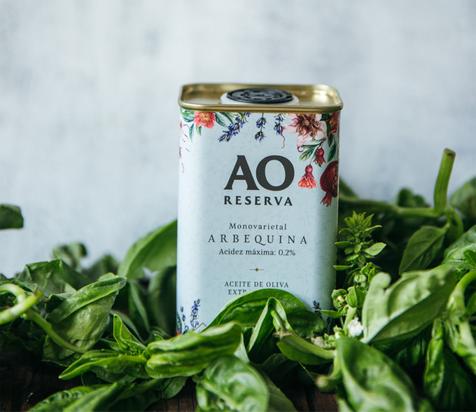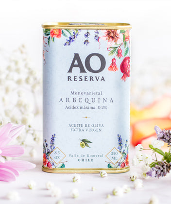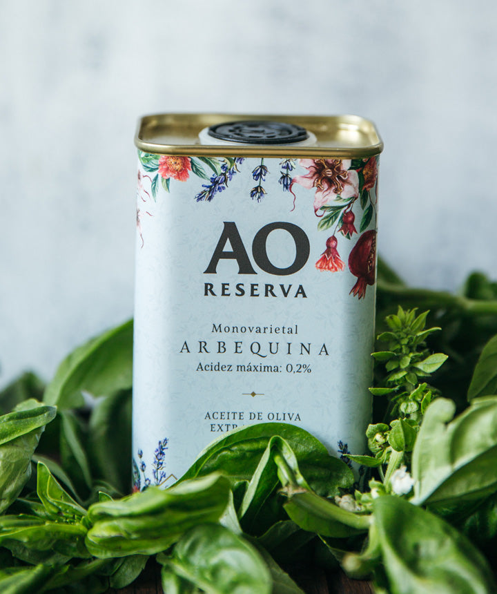 Exclusivo envase de Aceite de Oliva Arbequina Reserva.